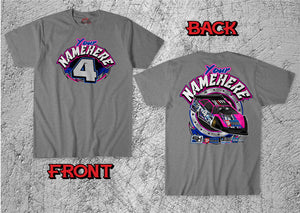 This custom dirt late model T-shirt  is part of our Eliminator series. It features the driver name, number and a car illustration. These are full blown custom racing shirts, and all of our shirts are printed with the latest technology in Direct to Garment printing. This allows us to offer very low quantities at very competitive prices. We use only 100% cotton T-shirts. This gives us the finest print quality along with the most comfortable wearing shirt. Many of these designs feature the car with your number style and sponsors. If you would like your wrap design, number style and sponsors on your shirts you will need to email us a file with this artwork. If you do not have the files, your wrap or decal company should have them. Please send that to info@p3graphix.com.